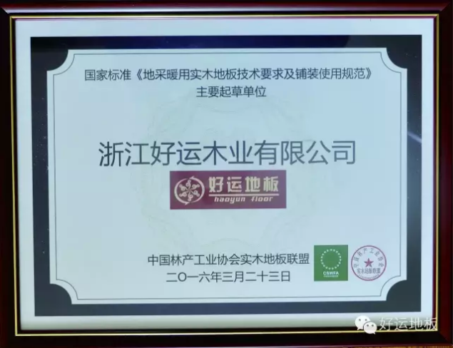 蘑菇视频APP下载安装地板获颁国家标准《地采暖用实木地板技术要求及使用规范》主要起草单位